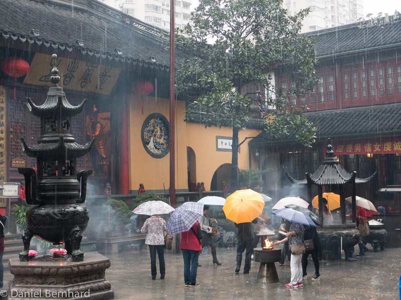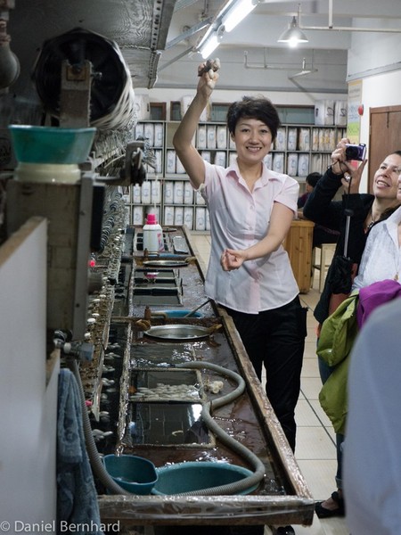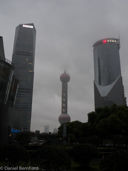 Um 8:00 starteten wir mit einem tollen Frühstück in den Tag - leider regnet es noch immer heftig. Den ersten Stopp machen wir beim Jade Buddha Tempel - dann besuchen wir eine Seidenspinerei - das gemeinsame Mittagessen wird mit Tanz, Gesang und Musik auf der Bühne begleitet. Am Nachmittag machen wir einen ausführlichen Spaziergang durch den Yu-Garten und fahren mit dem Bus hinüber nach Pudong - die Bauten sind beeindruckend hoch und verschwinden in den Wolken.