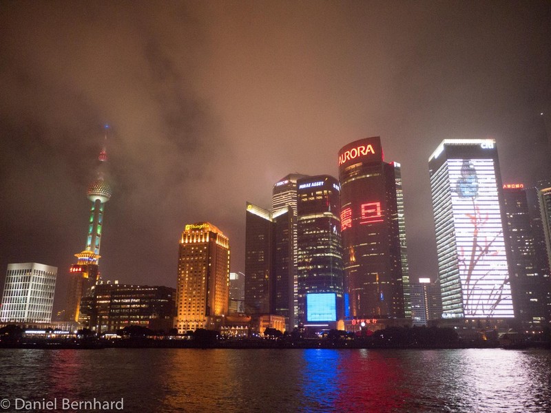 Gegen 19:00h starten wir zu einem optionalen Ausflug - mit dem Bus geht's zum Bund und dort zu einer Hafenrundfahrt entlang der Skyline von Pudong. Gegen Mitternacht fallen wir müde ins Bett.