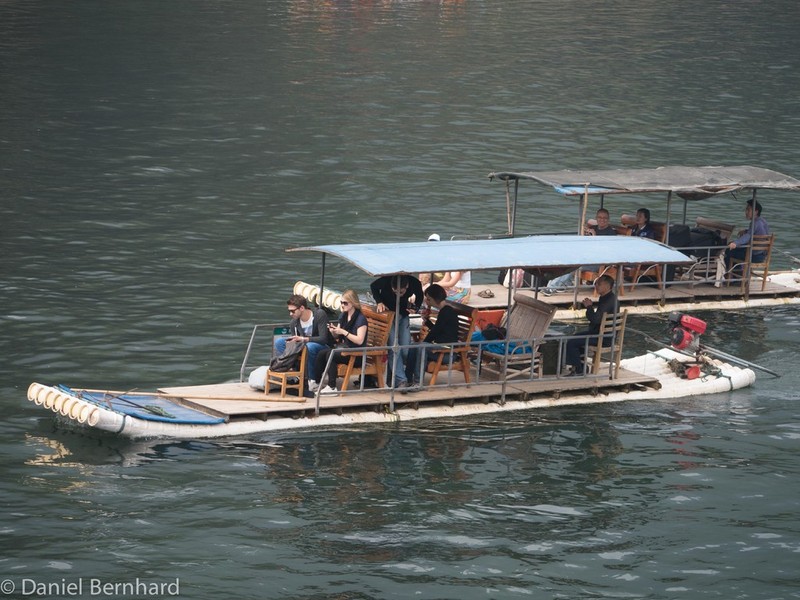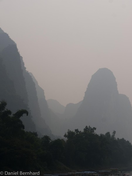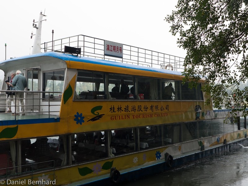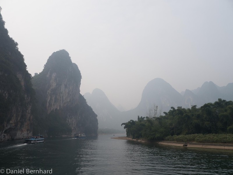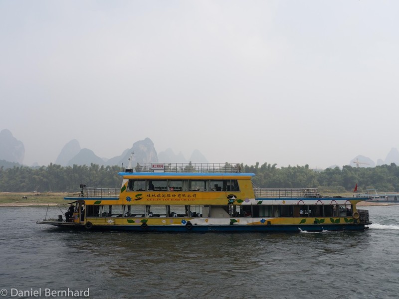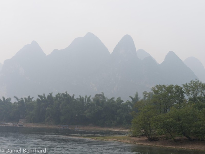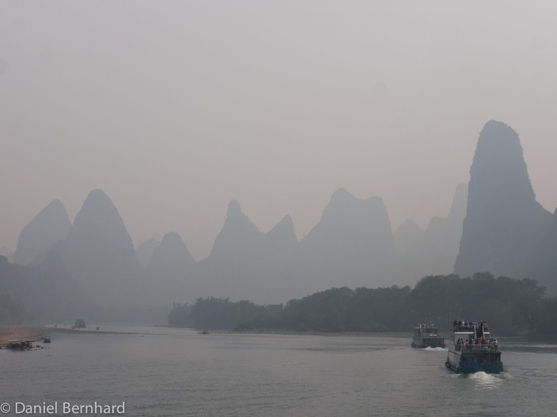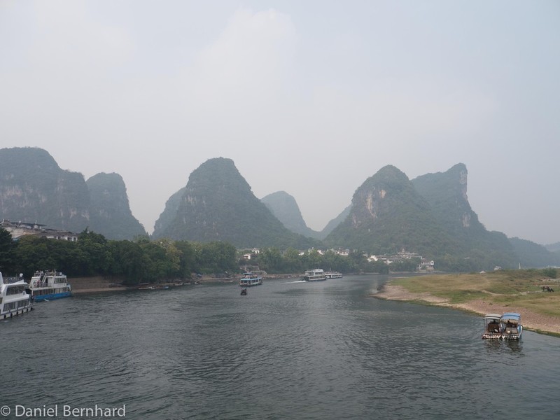 Gegen 1:00h konnten wir dann unsere Zimmer im Hotel Guilin Plaza beziehen. Etwas später als sonst erfolgte das Wecken und das Frühstück - um 8:40h brachte uns der Bus zu der Anlagestelle für eine ca. vierstündige Bootsfahrt (inkl. Mittagessen) auf dem Lijang-Fluss - dieser schlängelt sich zwischen den Karst-Bergen hindurch.