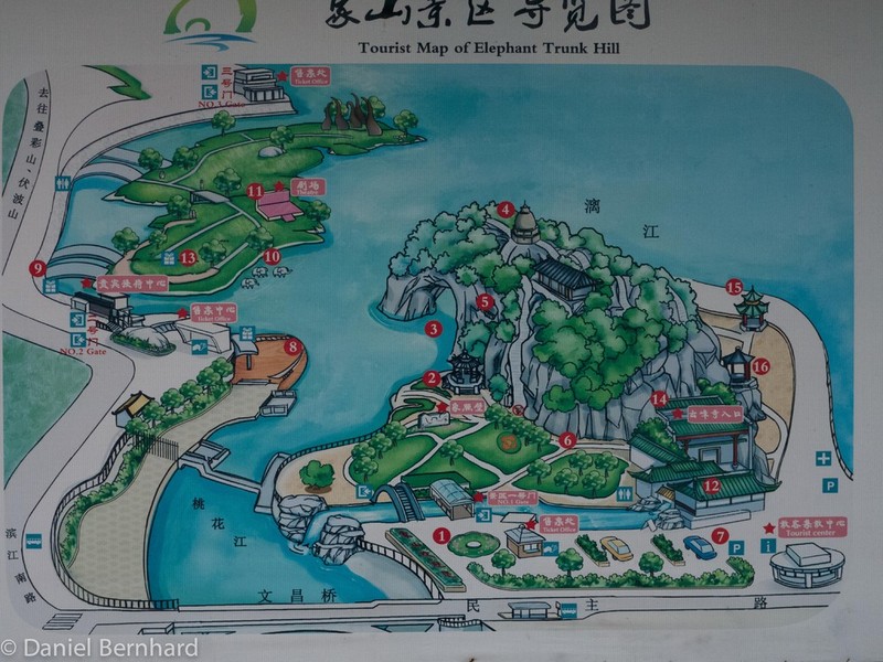 Der Reiseleiter bot danach einen optionalen Ausflug auf das Land an (Besichtigung von Bauernhof, Plantagen, Wasserbüffel etc.) - danach ging es mit dem Bus zurück nach Guilin und dort zum Elefantenrüsselfelsen. Zurück im Hotel mussten wir uns etwas beeilen - gegen 22:00h sollten die Koffer vor den Zimmern stehen, für den Flug am nächsten Tag. Wir hatten uns dann noch für einen gemütlichen Umtrunk zusammengesetzt.