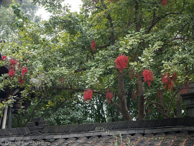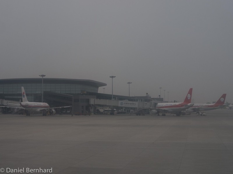 4:30h und der Wecker klingelt - um 5:30h Abfahrt zum Flughafen. Wir fliegen mit MU2341 (China Eastern) von 7:39h bis 8:53h nach Chengdu - einer der üblichen Kofferschäden bremst unsere Gruppe etwas ein. Für subtropisches Klima ist es mit 17°C zu kühl - wir bummeln durch die Altstadt. In einem ehemaligen Funktionärsrestaurant ist das Essen für uns vorbereitet.