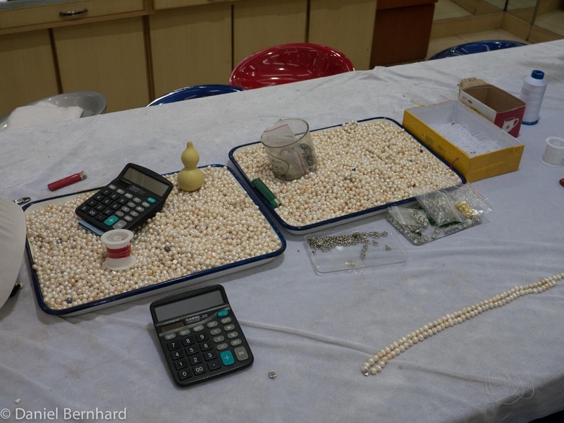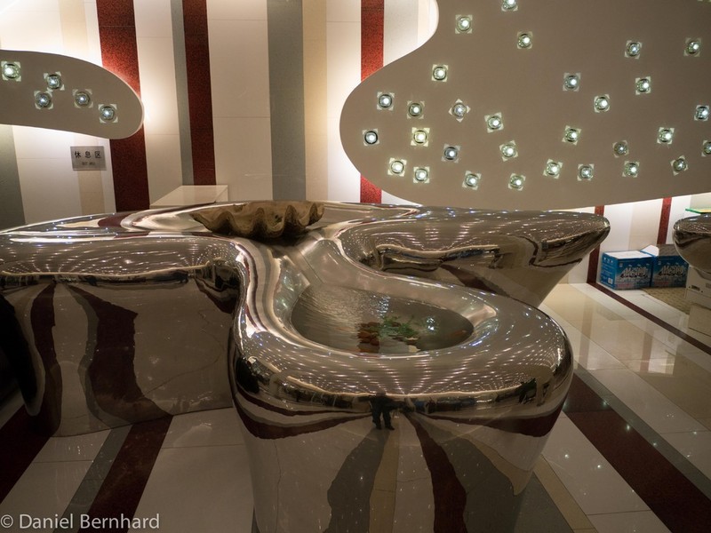 Nach dem Mittagessen haben wir dann eine Perlen-/Schmuckfabrik besucht. Die Fahrt geht weiter zum Himmelstempel - der Regen kehrt zurück. Wir nutzen die Zeit um in einem Einkaufszentrum etwas zu Shoppen und zu Essen. Gegen 19:00h starten wir mit dem Bus zum Bahnhof Peking-West. Von dort fahren wir mit dem Nachtzug (Zug Z19, Gleis 6, Waggon 17, Kabine 4, Betten 13-16) nach Xi'an - Abfahrt erfolgt um 20:43h. Eine neue Erfahrung.