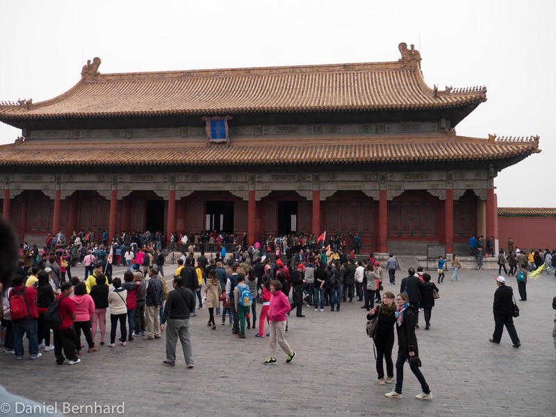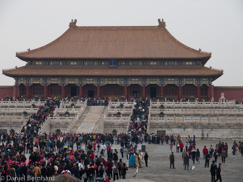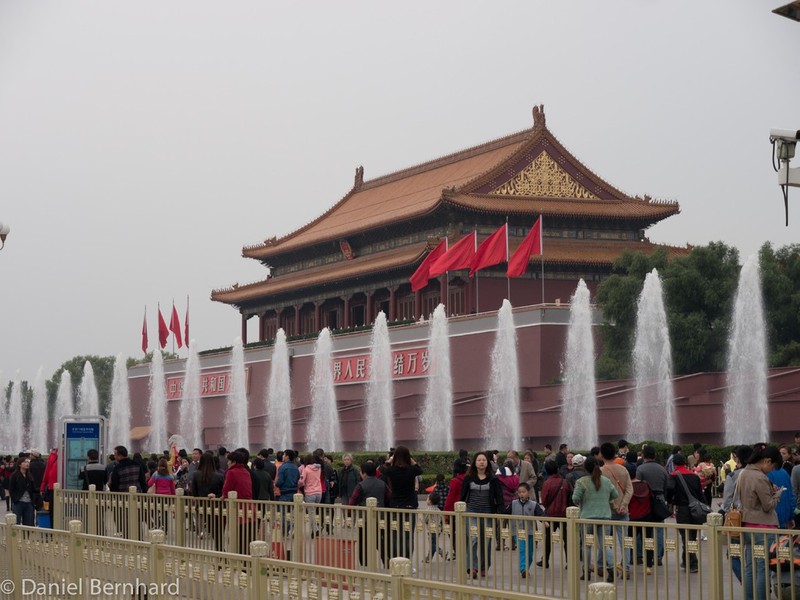 Schon um 5:45h klingelte wieder der Wecker - langsam entwickeln wir eine Routine - die Koffer müssen um 7:45h vor der Türe stehen (werden für die Weiterreise abgeholt). Unser Tagesprogramm beginnen wir mit der Abfahrt um 8:30h zum Olympiagelände - das Wtter hat sich leider eingetrübt. Wir fahren dann zum Platz des himmlischen Friedens und besuchen die verbotene Stadt (quer durch bis zum Kohlehügel).