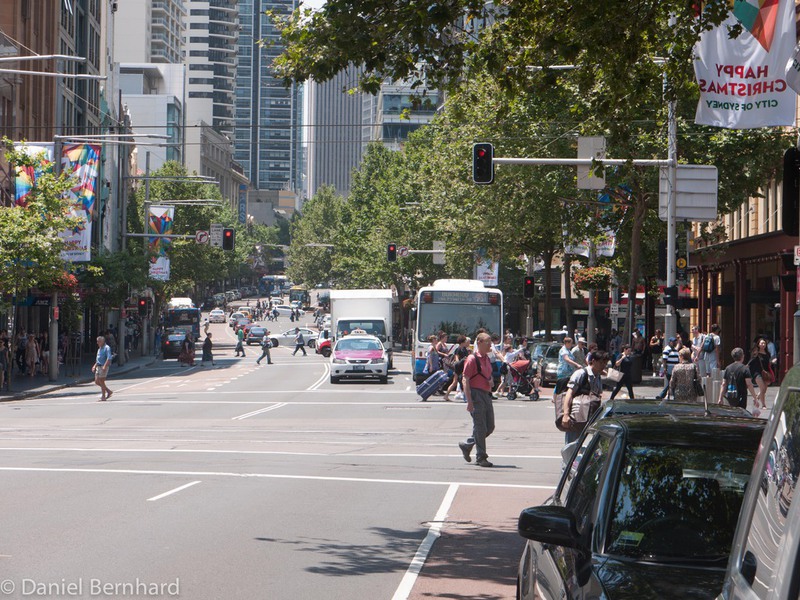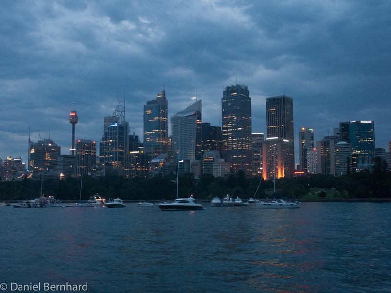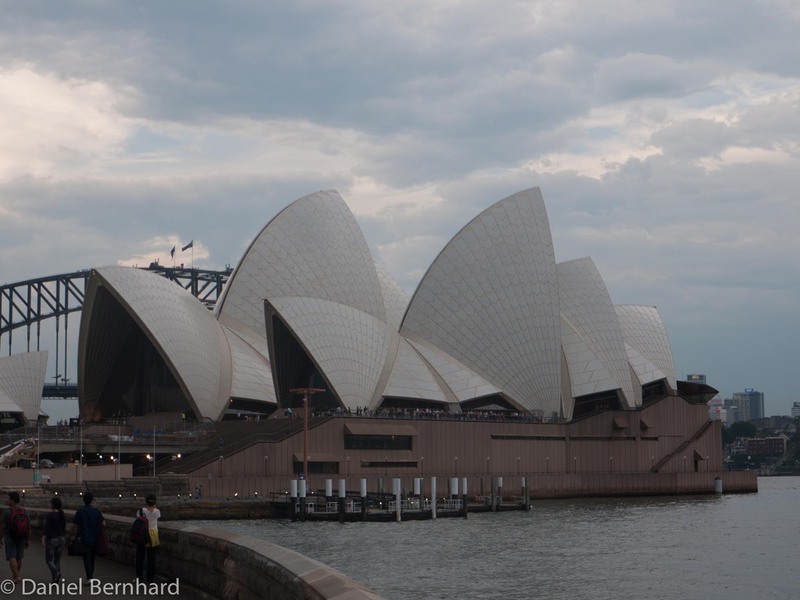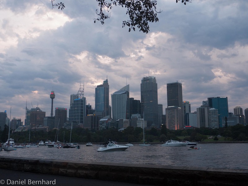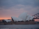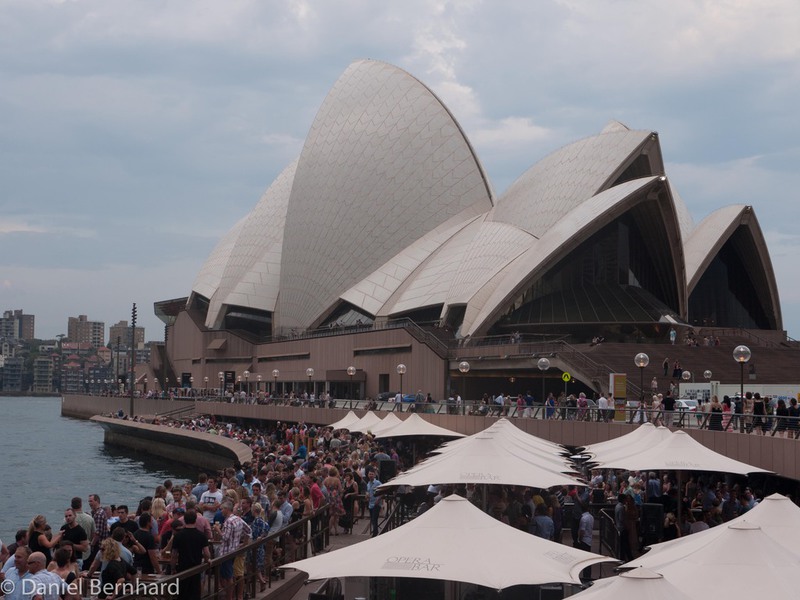 Über Nacht hatte es nur wenig abgekühlt - die Tageshöchsttemperatur sollte auf 36°C steigen. Deshalb beschlossen wir für diesen Tag, diverse Shops und Malls zum Stöbern zu besuchen (die sind alle klimatisiert) - es wurden einige 'wichtige' Einkäufe getätigt. Am Nachmittag gingen wir durch die Elisbaeth und die Pitt Street zum Hafen - für unser immer wieder Anziehungspunkt. Nach einer Erfrischung bei Löwenbräu machten wir uns auf den Weg, vorbei am botanischen Garten in dem ein Techno-Konzert stattfand, zum MacQuarie Point, um von dort aus den Sonnenuntergang hinter dem Opernhaus zu genießen.