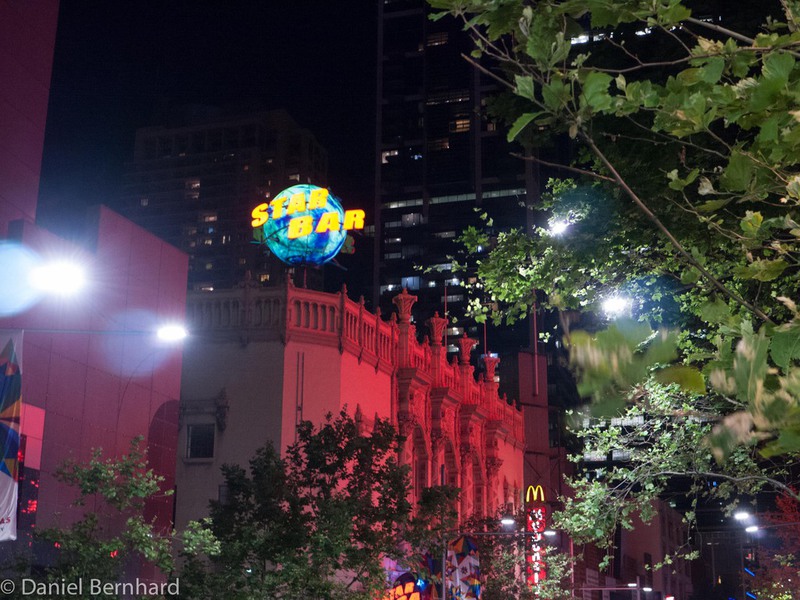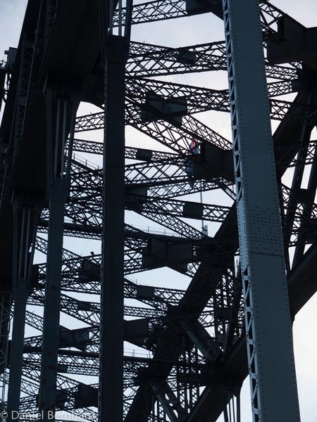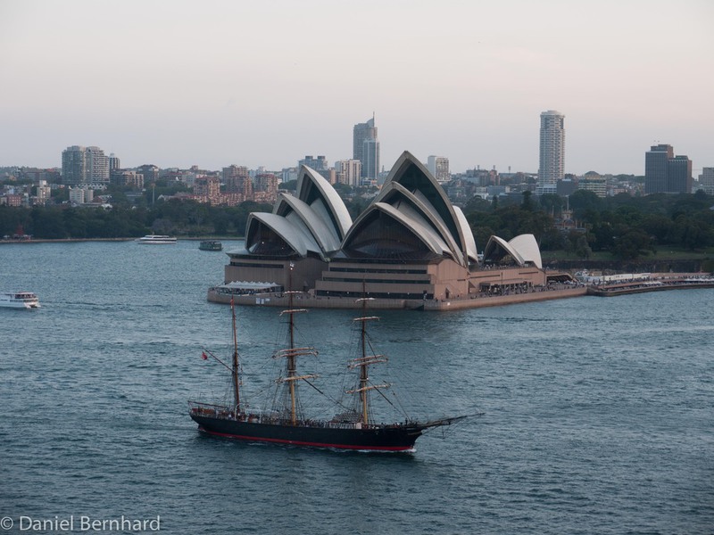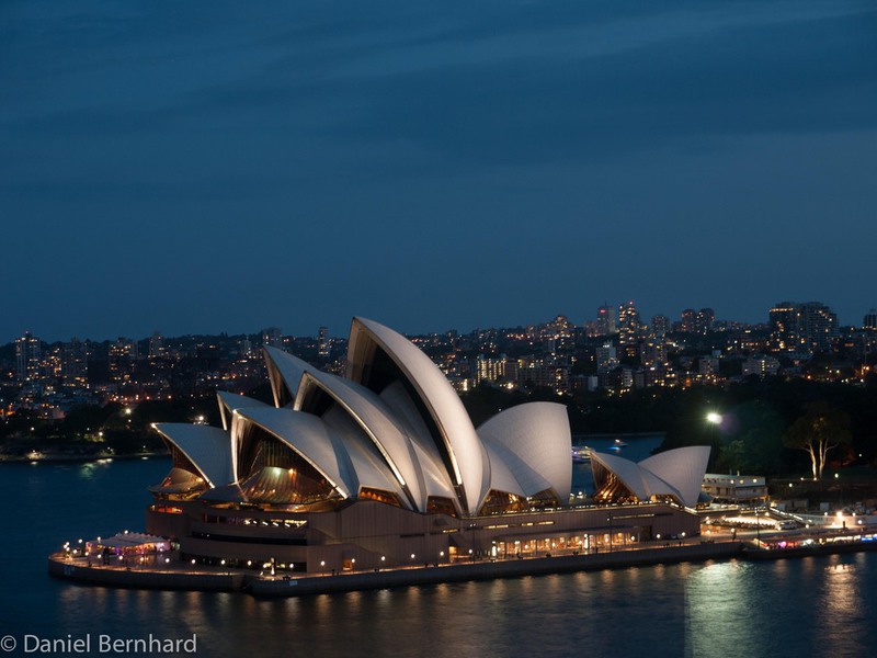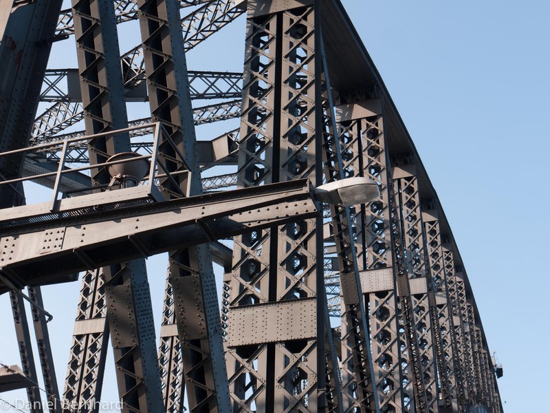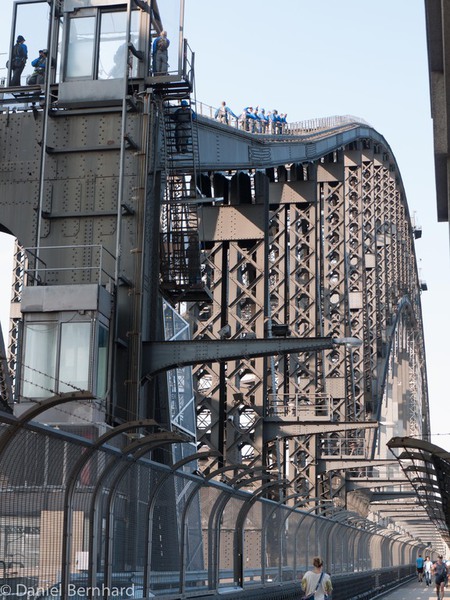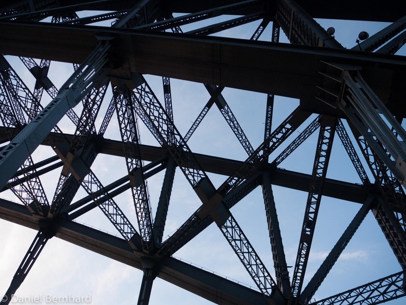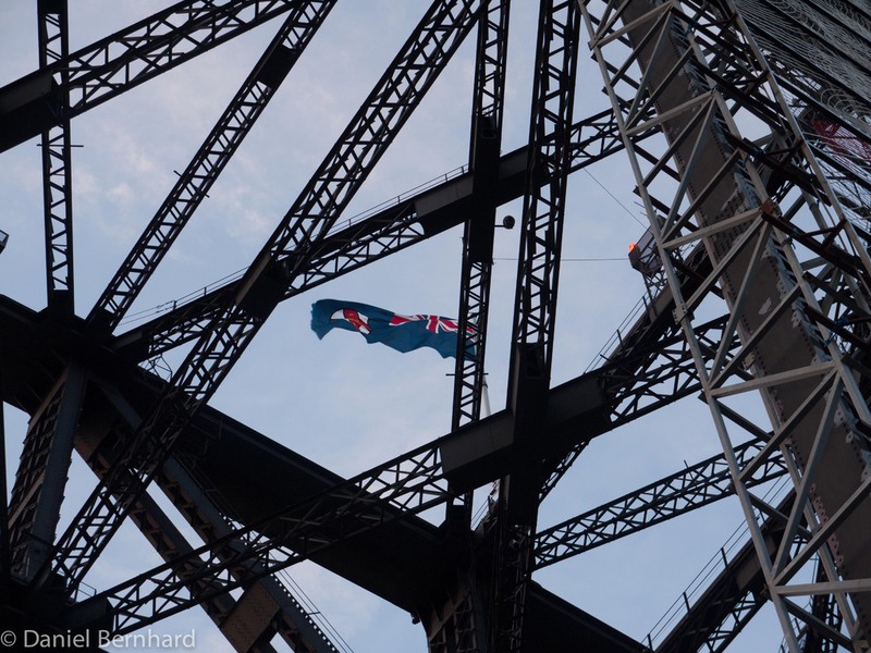 Wir gehen in den Stadtteil The Rocks und von dort auf die Harbour Bridge. Wir entschließen uns zur Überquerung der Brücke zu Fuß - am anderen Ende belohnen wir uns mit einem Imbiss. Mit Beginn der Dämmerung machen wir uns auf den Rückweg über die Brücke und sind von der Aussicht fasziniert. Den Rückweg zum Hotel treten wir durch die George Street an.